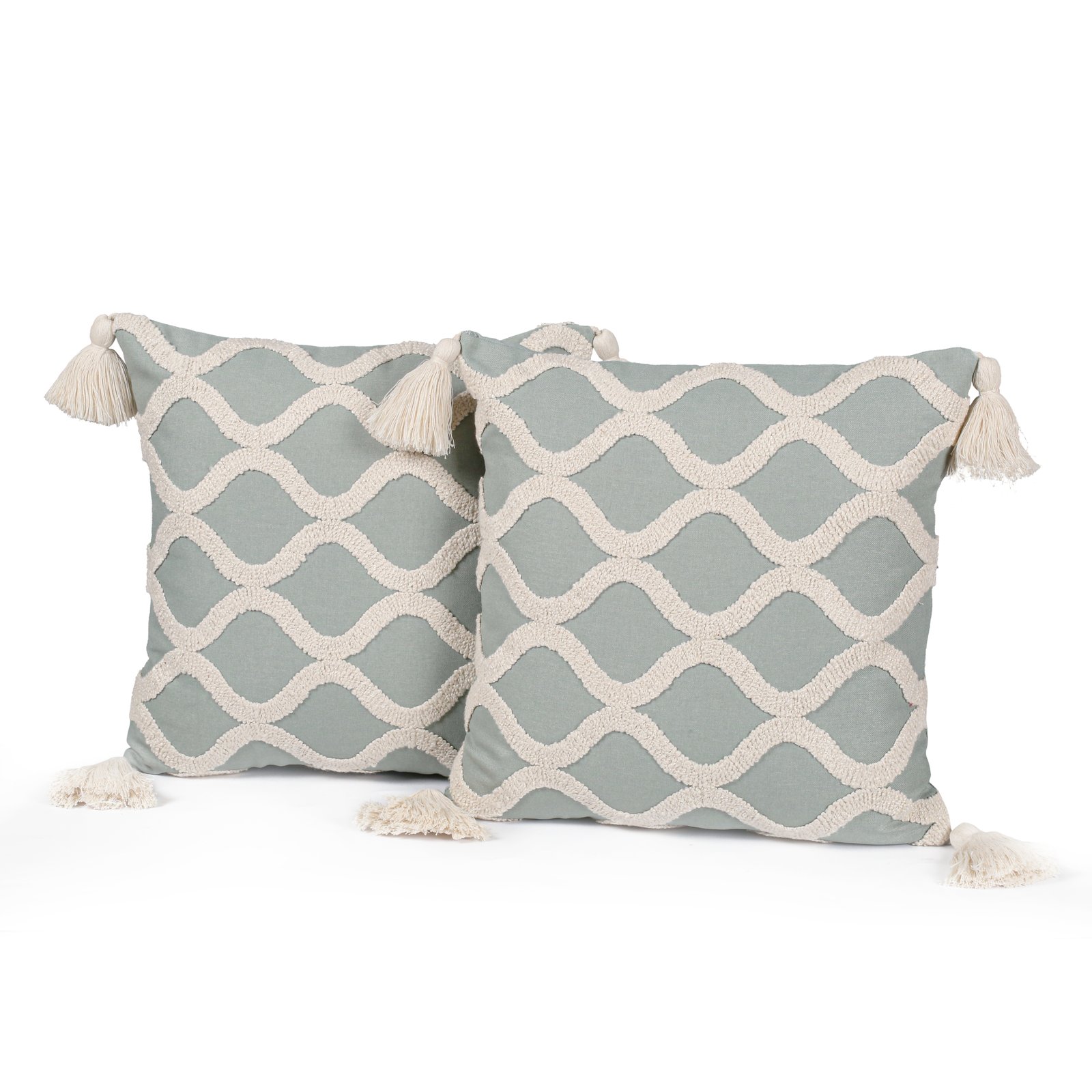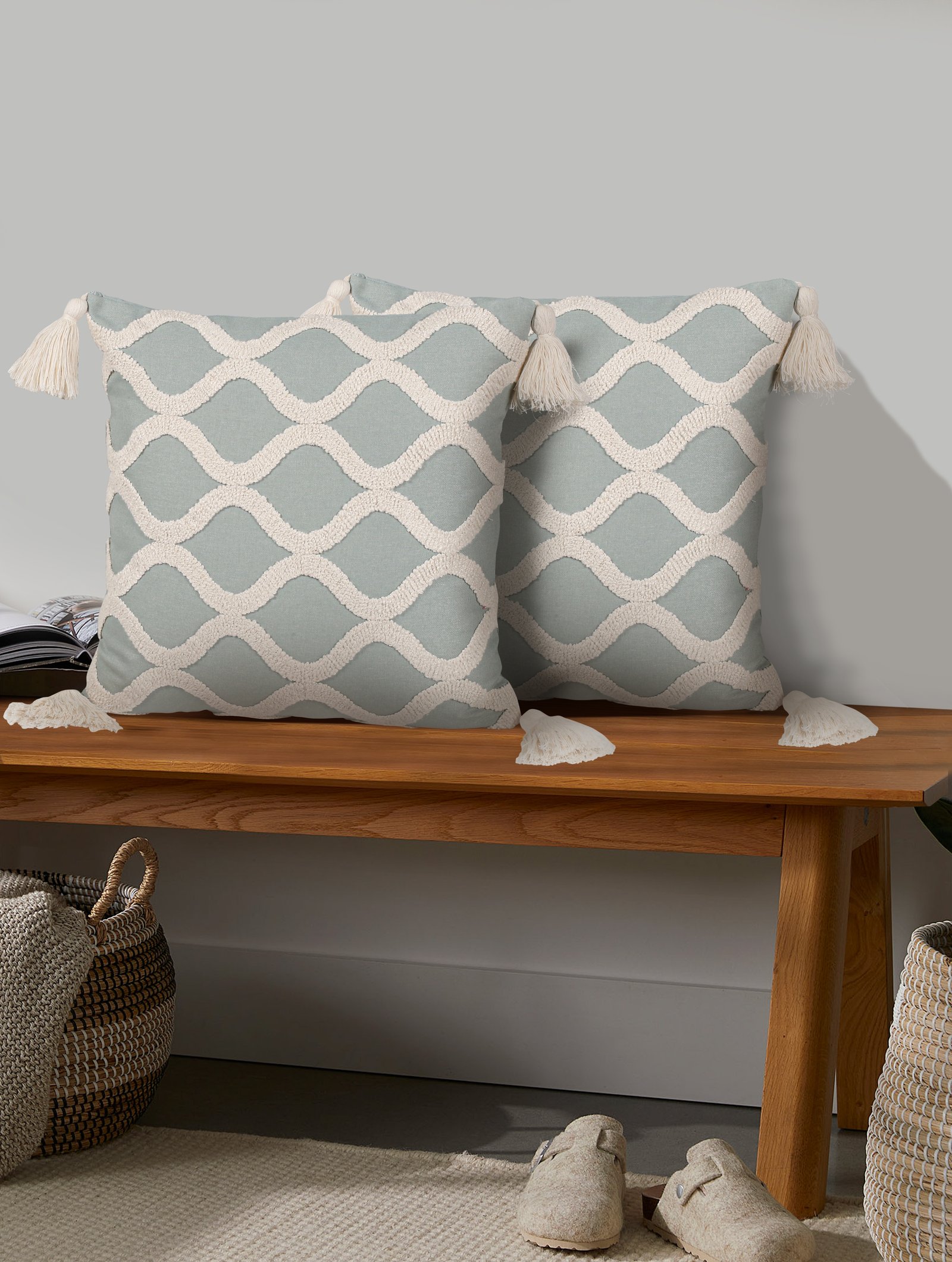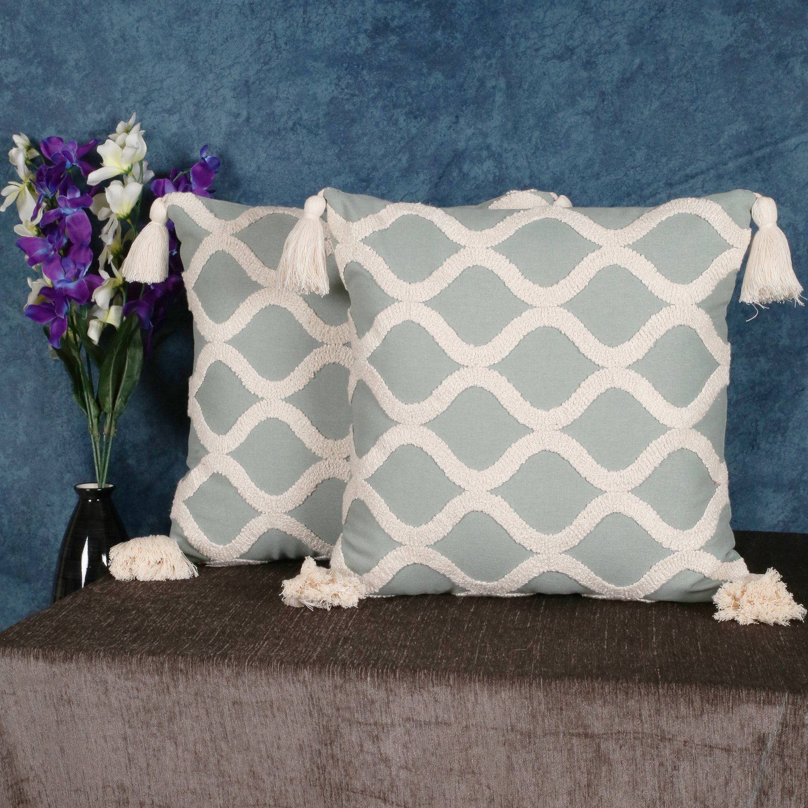 /    /  Cushion Cover, Cushions, Embroidery  /  Cotton Decorative Cushion Covers (Sea Green with Beige Color EMB 16 * 16) Set of 2